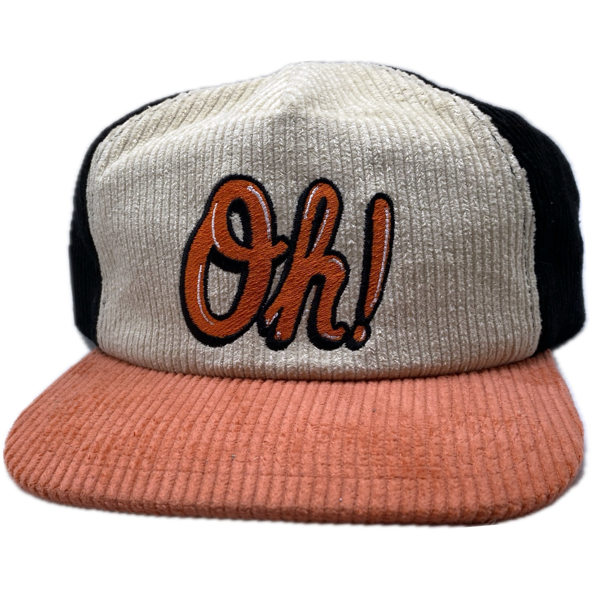 Corduroy Snapback Vintage white/orange/black Orange/Black/White Thread Embroidered in Baltimore