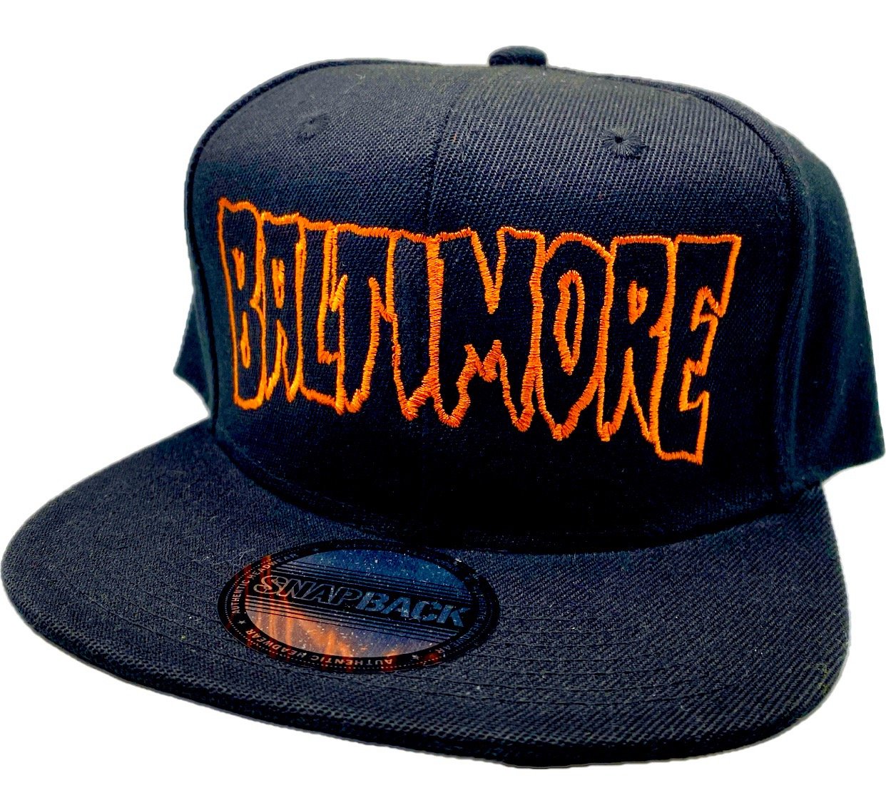 Classic Snapback Embroidered in Baltimore Black hat/Orange thread